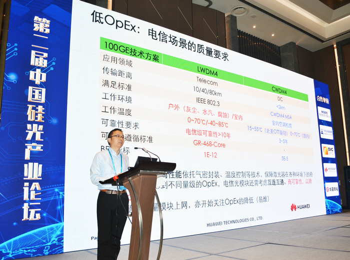 華為公司專家謝耀輝博士發(fā)表《客戶視角看光模塊與硅光產(chǎn)業(yè)》的主題報告,他表示光模塊的大帶寬高速互連能力,可以涵蓋數(shù)十米到上千公里的場景,因此具有很高的商業(yè)價值。光模塊應(yīng)該看作是一個子系統(tǒng),只有進行單板器件級別的適 配與測試,才能保證光模塊 在設(shè)備上各項參數(shù)最優(yōu),長期穩(wěn)定運行。硅光模塊具有極簡架構(gòu)、經(jīng)濟量產(chǎn)、高度集成、可插拔和光口標(biāo)準(zhǔn)帶來的互聯(lián)互通。硅光技術(shù)可行路徑,謝博士推薦異質(zhì)平臺的集成,要探索電組件與光組件的最佳集成,建設(shè)面向未來的基礎(chǔ)光電平臺,這需要產(chǎn)業(yè)協(xié)同和持續(xù)投入。