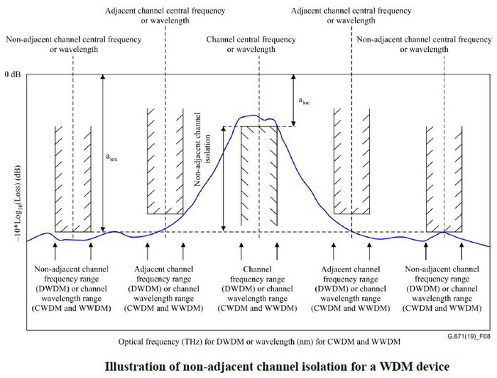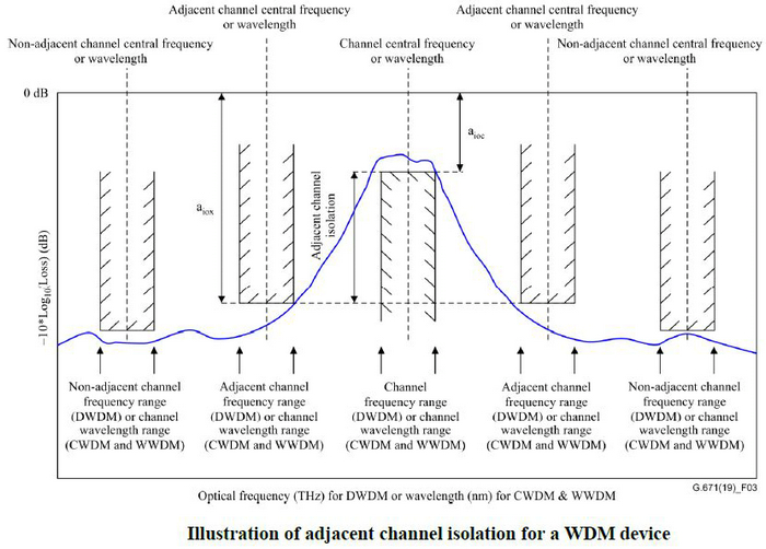 圖2:ITU-T G.671關(guān)于非相鄰?fù)ǖ栏綦x度的圖解