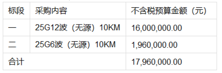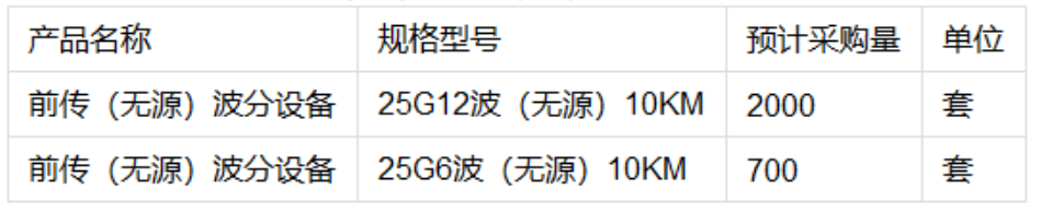 ICC訊 (編輯:Nicole) 根據(jù)2022年5G建設(shè)需求,內(nèi)蒙古移動(dòng)啟動(dòng)2022年前傳波分復(fù)用設(shè)備(非標(biāo))采購(gòu)項(xiàng)目(招標(biāo)編號(hào):NMYD20220500198),本次采購(gòu)前傳(無源)波分設(shè)備(非標(biāo))2700套,預(yù)算金額1796萬元(不含稅)。