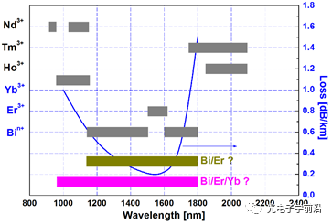 圖1. 鉍鉺共摻光纖和鉍鉺鐿共摻光纖的光譜范圍