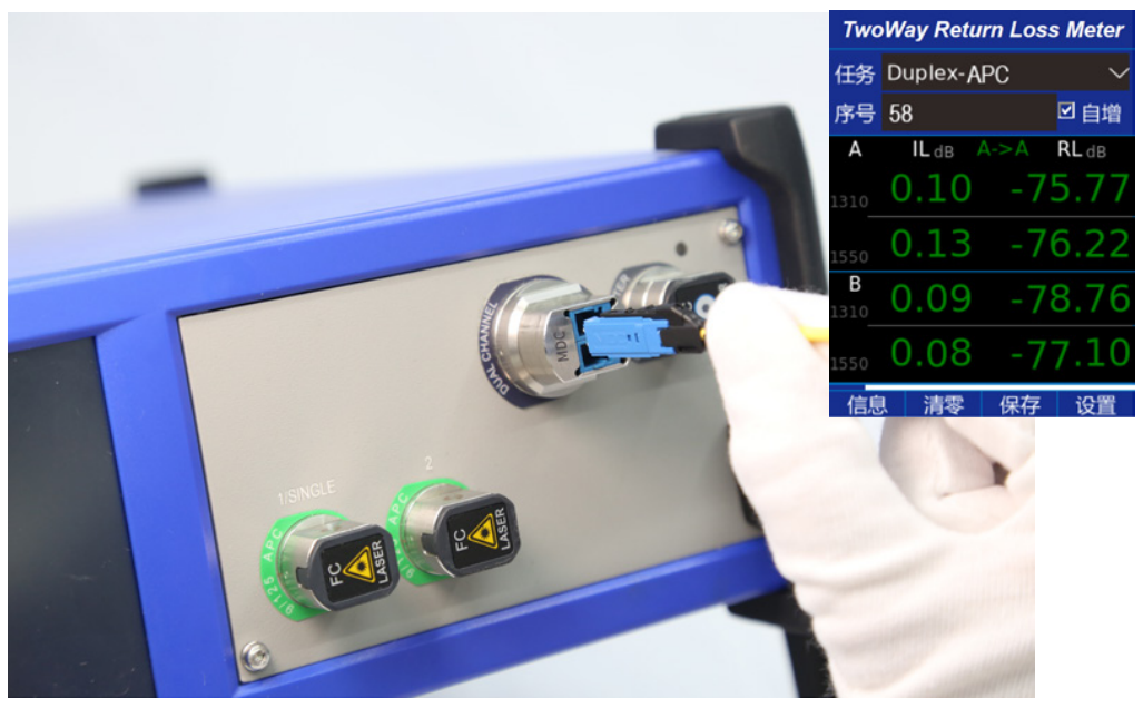 TwoWay雙通道極性回?fù)p測(cè)試儀,可實(shí)現(xiàn)IL、RL和 Polarity同時(shí)自動(dòng)測(cè)試的 新型產(chǎn)品,同時(shí)測(cè)試時(shí)間小于2s(快速模式),可以大大提高測(cè)試效率,降低 客戶(hù)設(shè)備投入成本。