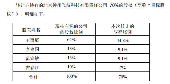截至本意向協(xié)議簽署時,轉(zhuǎn)讓方合計持有標的公司 100%的股權(quán)。轉(zhuǎn)讓方擬向受讓方出讓其合計持有的標的公司 70%的股權(quán),受讓方擬受讓目標股權(quán)。