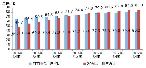圖42016-2017年5月光纖接入(FTTH/O)和20Mbps及以上