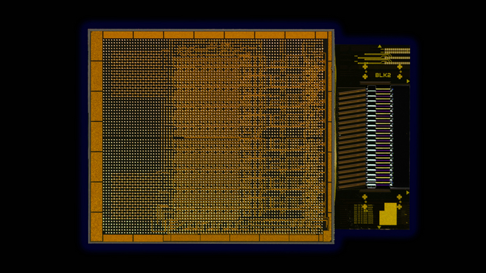 英特爾公司集成光子學(xué)解決方案(IPS)組展示了業(yè)界首個(gè)與英特爾CPU共封裝并運(yùn)行實(shí)時(shí)數(shù)據(jù)的全集成光計(jì)算互連(OCI)芯片??稍谛屡d的AI基礎(chǔ)設(shè)施中為數(shù)據(jù)中心和高性能計(jì)算應(yīng)用提供共封裝光輸入/輸出。(資料來源:英特爾公司)
