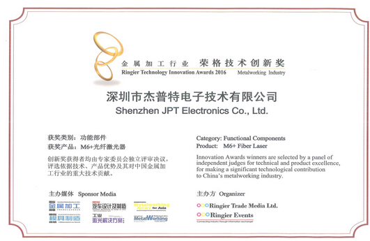 ICCSZ訊 近日,受邀于主辦方榮格工業(yè)傳媒,杰普特出席了在上海舉行的“2016金屬加工行業(yè)——榮格技術(shù)創(chuàng)新獎(jiǎng)”頒獎(jiǎng)典禮。