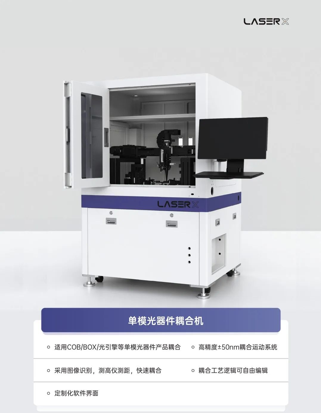 鐳神技術(shù)是一家在國內(nèi)外光通信領(lǐng)域少有的同時(shí)具備芯片級(jí)、器件級(jí)和模塊級(jí)的封裝、耦合、老化測試的高精密自動(dòng)化裝備公司。公司積極推動(dòng)國內(nèi)高端裝備國產(chǎn)化進(jìn)程,在細(xì)分領(lǐng)域自主掌握多項(xiàng)核心技術(shù)。公司的自動(dòng)化裝備在光通訊、工業(yè)激光、芯片制造等行業(yè)成功應(yīng)用,帶動(dòng)了光通信產(chǎn)業(yè)鏈上下游發(fā)展,為實(shí)現(xiàn)核心裝備國產(chǎn)替代貢獻(xiàn)力量。