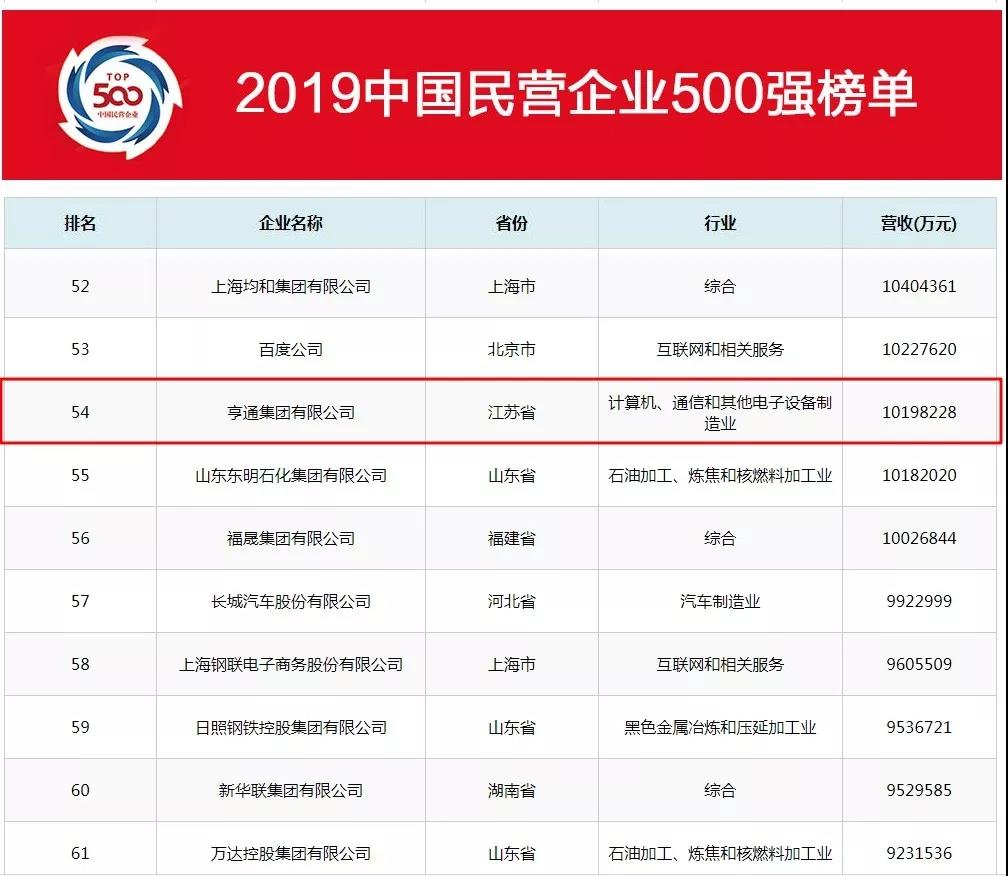 剛剛,中國民企500強(qiáng)出爐 亨通集團(tuán)位列54位