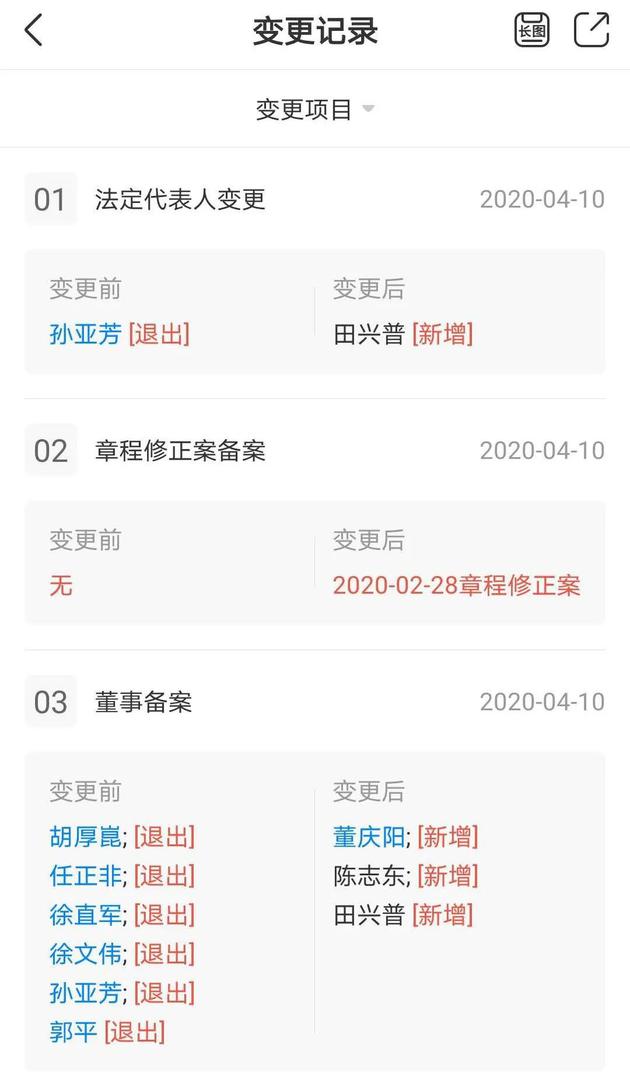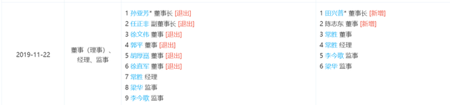 除了上述兩家子公司的董事會變更外,在2019年12月30日,華為另一被全資控股子公司杭州華為企業(yè)通信技術(shù)有限公司發(fā)生一系列董監(jiān)高變更,郭平卸任法定代表人、董事長,由田興普接任;此外,孟晚舟卸任董事,新增董事龐云光。