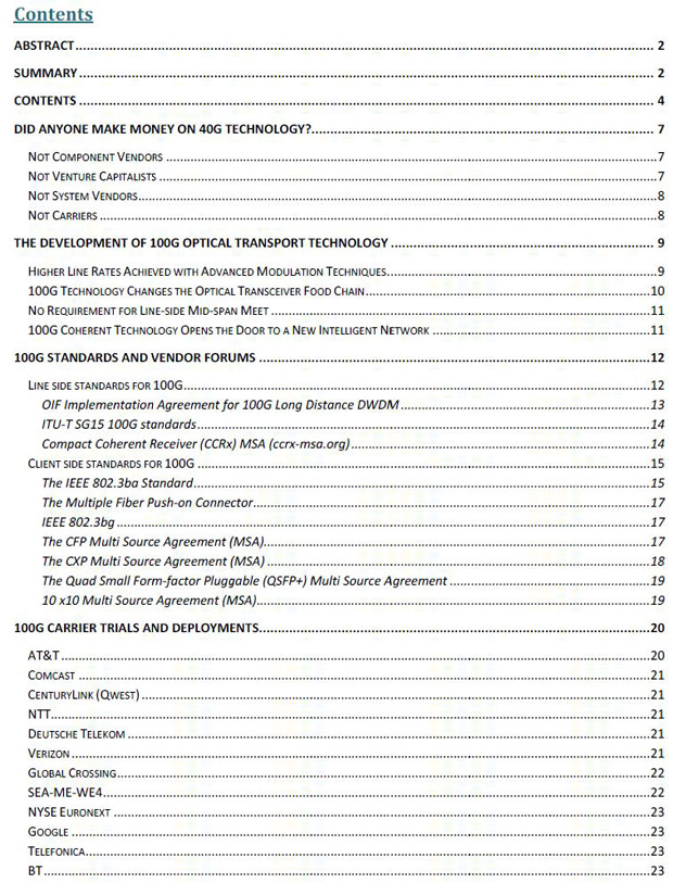 該報告還分析了數(shù)據(jù)中心的40G和100G以太網(wǎng)的市場機(jī)會。報告提供Lightcounting對于客戶端和線路端40/100G技術(shù)以及當(dāng)前市場價格的評估。最后,它提出了正在進(jìn)行研究的超越100G的光傳輸技術(shù)的可能性分析。