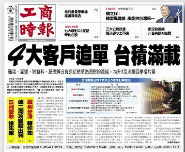 6月8日,臺灣《工商時報》在頭版刊發(fā)題為《4大客戶追單 臺積滿載》的文章稱,近日內(nèi)包括蘋果、高通、聯(lián)發(fā)科、超微等公司已向臺積電大幅追加第四季7nm訂單。