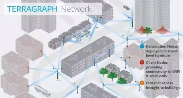 Facebook的Terragraph網(wǎng)絡(luò),將設(shè)備掛在城市路燈上,組成毫米波網(wǎng)狀回傳網(wǎng)絡(luò),以替代昂貴的光纖敷設(shè)。