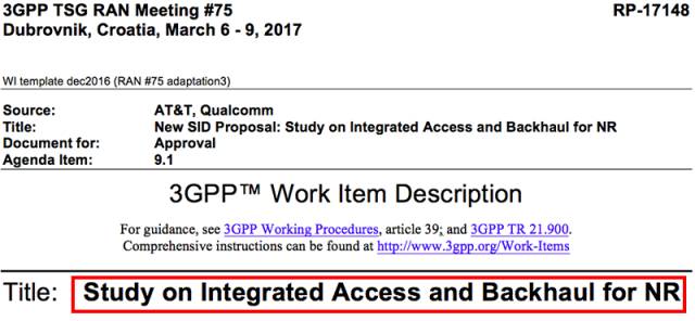 2017年3月6日至9日,3GPP RAN75#全會(huì)于克羅地亞的杜布羅夫尼克召開(kāi),這次會(huì)議不但通過(guò)了5G NR標(biāo)準(zhǔn)加速的提案,而且還提出了一個(gè)研究項(xiàng)目:5G NR集成無(wú)線接入和回傳(Integrated Access and Backhaul for NR)。