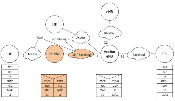 關(guān)于自回傳(Self-Backhauling)概念在LTE協(xié)議中已有,它利用LTE無(wú)線資源在eNB之間實(shí)現(xiàn)基于層三的點(diǎn)對(duì)點(diǎn)中繼,要求中繼eNB和錨定eNB之間協(xié)作調(diào)度。
