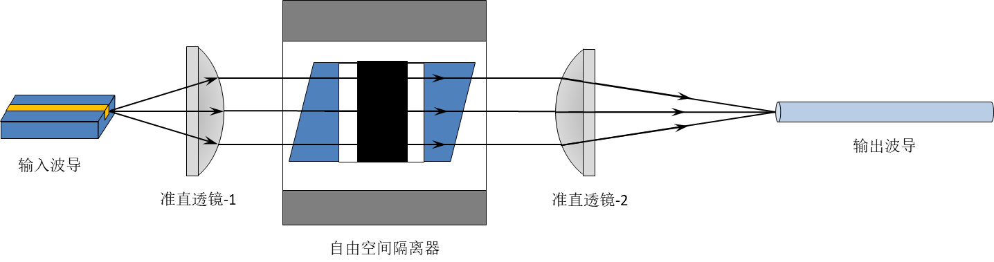 圖二:匯聚光自由空間隔離器設(shè)計(jì)方案