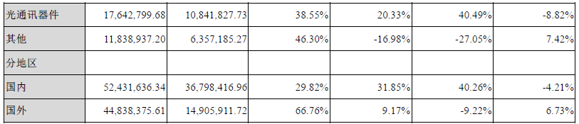 據(jù)悉,光庫科技2017年上半年營業(yè)收入增長是受益于國內(nèi)外光纖器件行業(yè)的良好成長,公司主要產(chǎn)品的市場需求旺盛,客戶訂單增長較快所致。同時,光庫科技加大了研發(fā)投入,面對市場變化,不斷研發(fā)更高功率的產(chǎn)品,以滿足市場需求。不斷加大市場營銷力度,特別是緊跟國內(nèi)光纖激光器行業(yè)的快速發(fā)展,緊抓國內(nèi)主要激光器廠商,做好銷售和服務(wù)工作。2017年上半年,光庫科技國內(nèi)銷售收入超過了國外銷售收入。