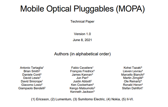 Lumentum與愛立信和諾基亞等完成移動(dòng)光學(xué)可插拔(MOPA)聯(lián)合技術(shù)論文