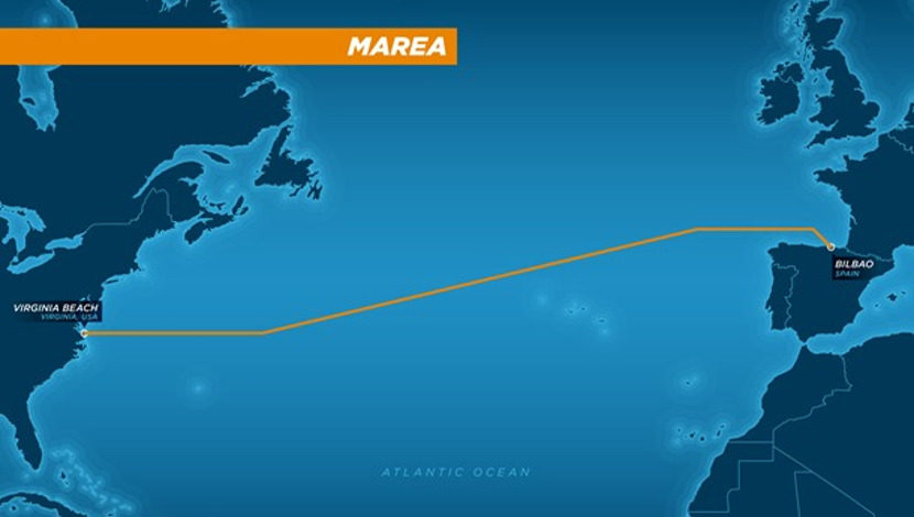 據(jù)介紹,MAREA海底光纜系統(tǒng)是連接美國維珍尼亞海灘和西班牙畢爾巴鄂的海底光纜系統(tǒng),全長6605千米,初始設計速率20Tbps。