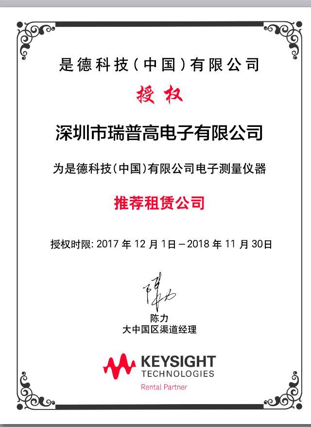 是德科技授權(quán)瑞普高電子為其中國(guó)光通信測(cè)試設(shè)備市場(chǎng)租賃合作伙伴