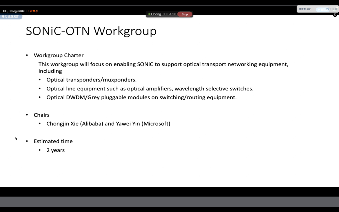 圖 | SONiC-OTN工作組主席謝崇進(jìn)介紹工作目標(biāo)