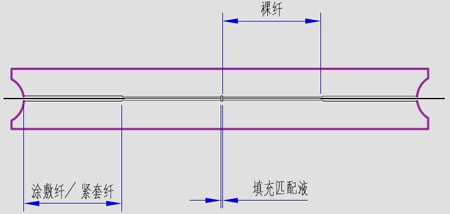 a)干式結(jié)構(gòu) 這種結(jié)構(gòu)非常簡單,優(yōu)勢在于實(shí)現(xiàn)較為容易造價(jià)低廉,但劣勢很多:對光纖直徑要求嚴(yán)格、對切割端面和切割長度要求嚴(yán)格、對加持強(qiáng)度要求更加嚴(yán)格;否則任何一處與產(chǎn)品不匹配都將引起參數(shù)的波動;另外,由于回波損耗指標(biāo)完全依賴于光纖切割端面的情況因此產(chǎn)品的回波損耗指標(biāo)比較差,對操作者熟練要求很高。產(chǎn)品結(jié)構(gòu)原理如下: