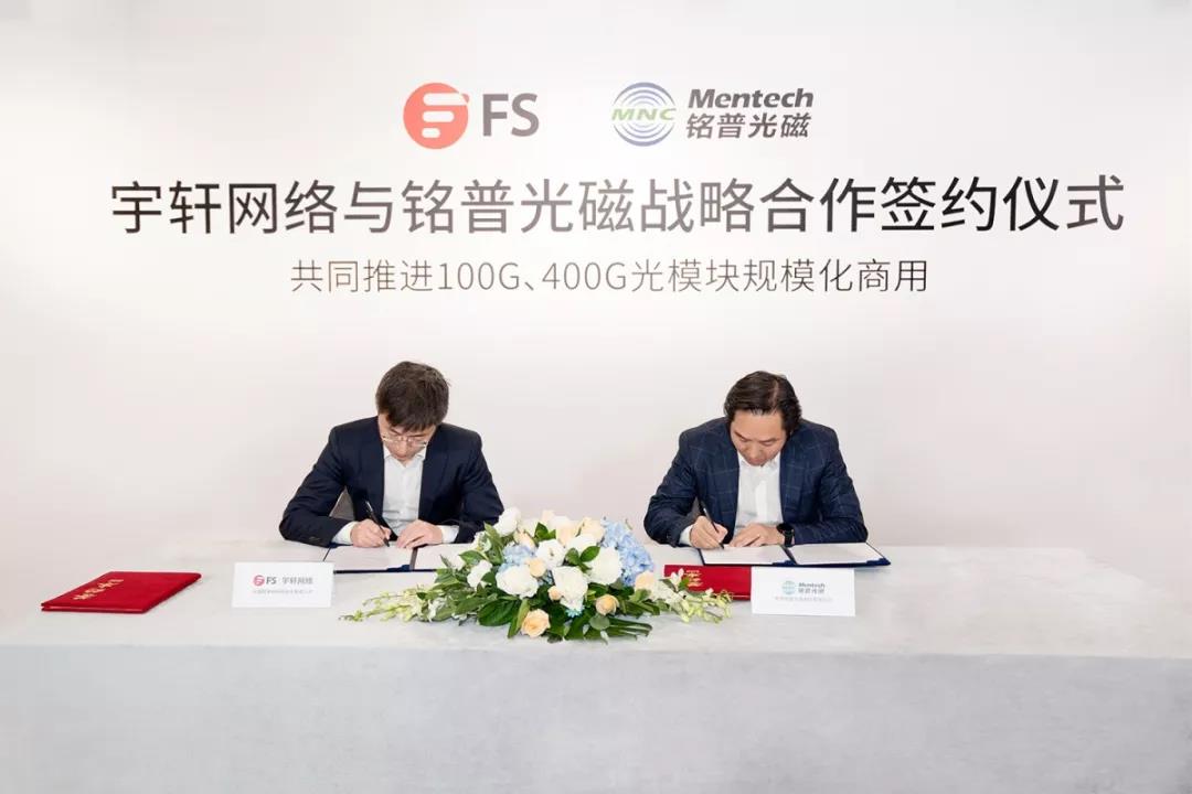 ICCSZ訊 11月21日上午,在武漢光谷軟件園,宇軒網(wǎng)絡(luò)與銘普光磁舉行戰(zhàn)略合作的簽約儀式,針對(duì) 100G光模塊產(chǎn)品,展開全方位戰(zhàn)略合作。并瞄準(zhǔn)數(shù)據(jù)中心,企業(yè)網(wǎng)市場(chǎng),聯(lián)合開發(fā)推出400G全系列光模塊,計(jì)劃在2020年第一季度實(shí)現(xiàn)FS.COM現(xiàn)貨上線發(fā)售。