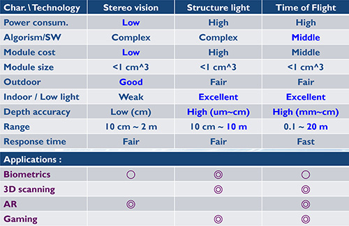 表1 三種類型技術(shù)打造3D感測應(yīng)用 資料來源:晶晟精密科技