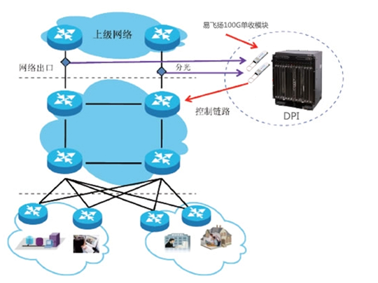 搭載易飛揚100G單收系列光模塊的DPI設(shè)備使用范圍主要有以下四個場景: