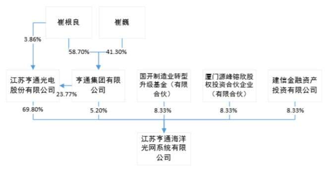 截至本公告披露日,亨通海洋光網(wǎng)的股權(quán)結(jié)構(gòu)如下: