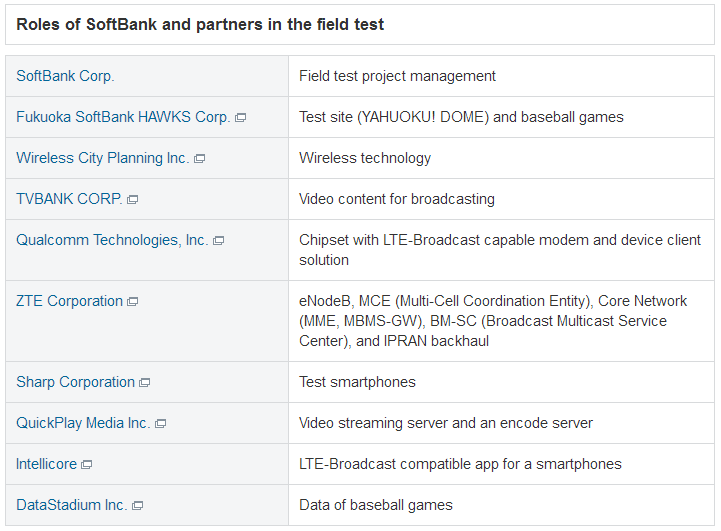 根據(jù)軟銀的計(jì)劃,LTE-Broadcast試驗(yàn)將于9月17日-9月19日在福岡Yahuoku!Dome棒球賽現(xiàn)場進(jìn)行,每天向約100名觀眾(共計(jì)300名)提供智能手機(jī)上的LTE-Broadcast業(yè)務(wù)體驗(yàn)。這些觀眾可以從6個(gè)720P頻道中選擇觀看比賽實(shí)況轉(zhuǎn)播、從多個(gè)不同視角近距離觀看球員精彩瞬間,以及實(shí)時(shí)獲取賽況進(jìn)程信息。