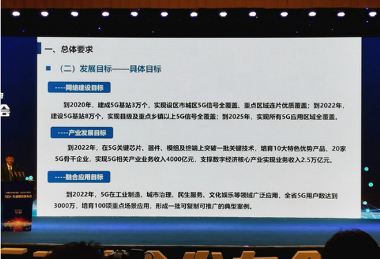 網(wǎng)絡(luò)建設(shè)方面。到2020年,建成5G基站3萬(wàn)個(gè),實(shí)現(xiàn)設(shè)區(qū)市城區(qū)5G信號(hào)全覆蓋、重點(diǎn)區(qū)域連片優(yōu)質(zhì)覆蓋。到2022年,建成5G基站8萬(wàn)個(gè),實(shí)現(xiàn)縣城及重點(diǎn)鄉(xiāng)鎮(zhèn)以上5G信號(hào)全覆蓋。到2025年,實(shí)現(xiàn)所有5G應(yīng)用區(qū)域全覆蓋。在產(chǎn)業(yè)發(fā)展方面。到2022年,在5G關(guān)鍵芯片、器件、模組及終端上突破一批關(guān)鍵技術(shù),培育10個(gè)特色優(yōu)勢(shì)產(chǎn)品、20家骨干企業(yè),實(shí)現(xiàn)5G相關(guān)產(chǎn)業(yè)業(yè)務(wù)收入4000億元,支撐數(shù)字經(jīng)濟(jì)核心產(chǎn)業(yè)業(yè)務(wù)收入2.5萬(wàn)億元。