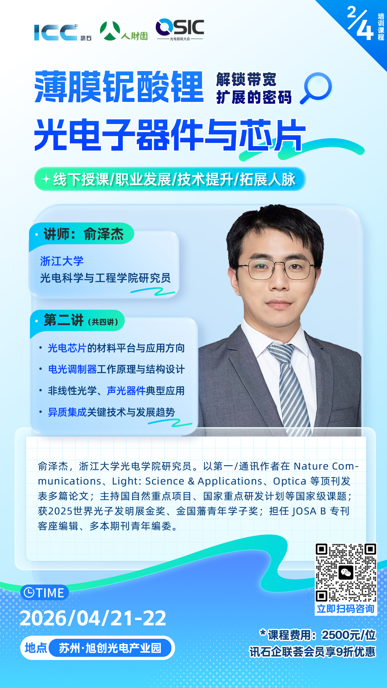 課程從基礎(chǔ)到前沿、從器件到集成,幫助學(xué)習(xí)者建立完整的鈮酸鋰薄膜光電子技術(shù)知識(shí)體系。