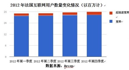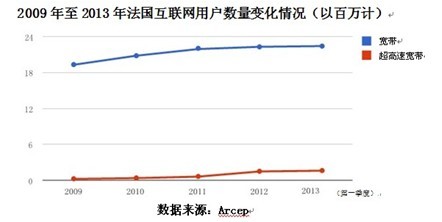 法國(guó)電子通信與郵政監(jiān)管局(簡(jiǎn)稱“ARCEP”)的最新一份統(tǒng)計(jì)數(shù)據(jù)顯示,自2011年以來(lái),法國(guó)寬帶用戶數(shù)量增長(zhǎng)緩慢;而光纖寬帶網(wǎng)絡(luò)建設(shè)還處于起步階段,2013年第一季度,法國(guó)光纖用戶數(shù)量?jī)H為170萬(wàn)。