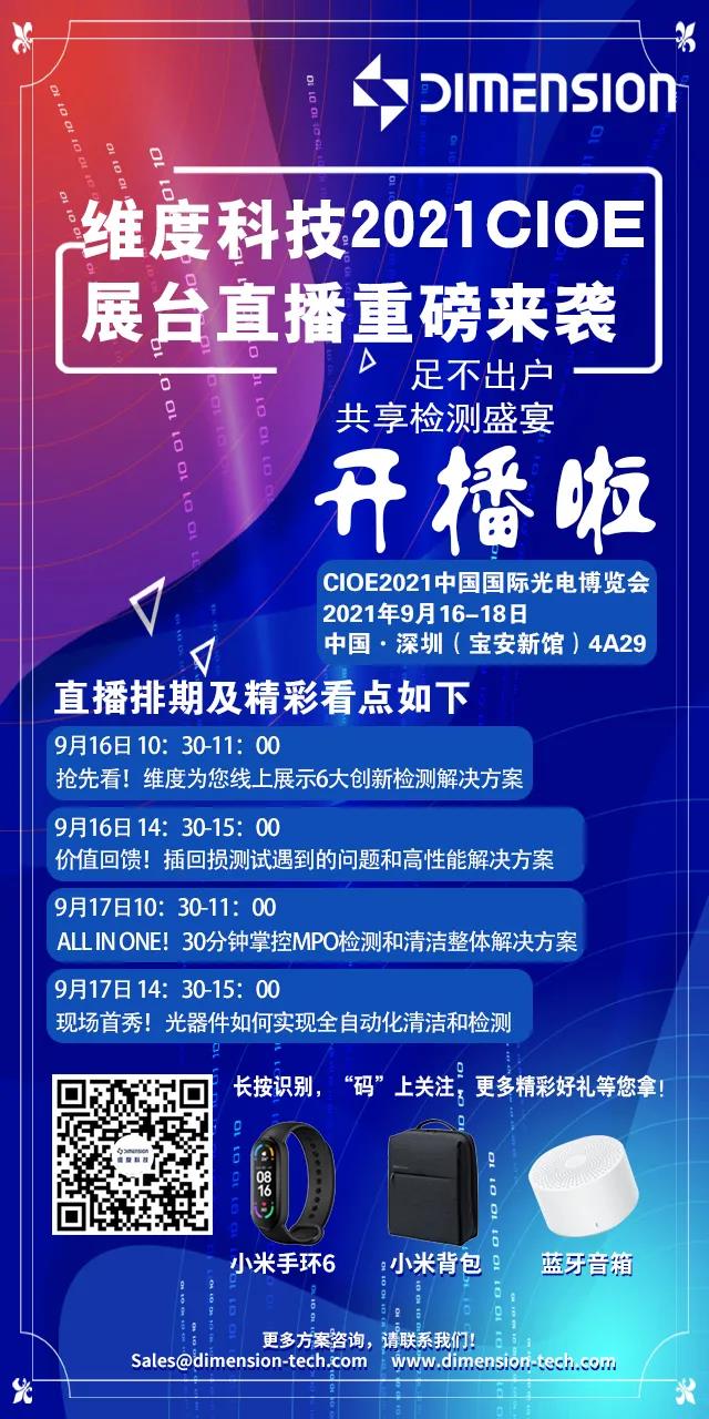 摘要:CIOE 2021深圳光博會(huì),維度科技將在微信視頻號(hào)為您現(xiàn)場(chǎng)直播啦,期間更有福利大放送哦,歡迎大家捧場(chǎng)!