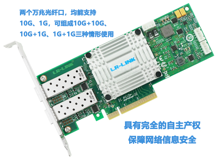 聯(lián)瑞LRES1002PF-2SFP+國(guó)產(chǎn)的具有自主知識(shí)產(chǎn)權(quán)的萬(wàn)兆以太網(wǎng)卡,在速率支持上可靈活地按實(shí)際使用需求采用10G+10G、10G+1G、1G+1G等三種速率進(jìn)行工作,滿足更多的使用需求。同時(shí)還可以兼容市面上幾乎所有的光纖模塊使用,具有廣泛的兼容性。