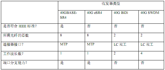 表3:不同光纖類型和收發(fā)器類型的傳輸距離(米)