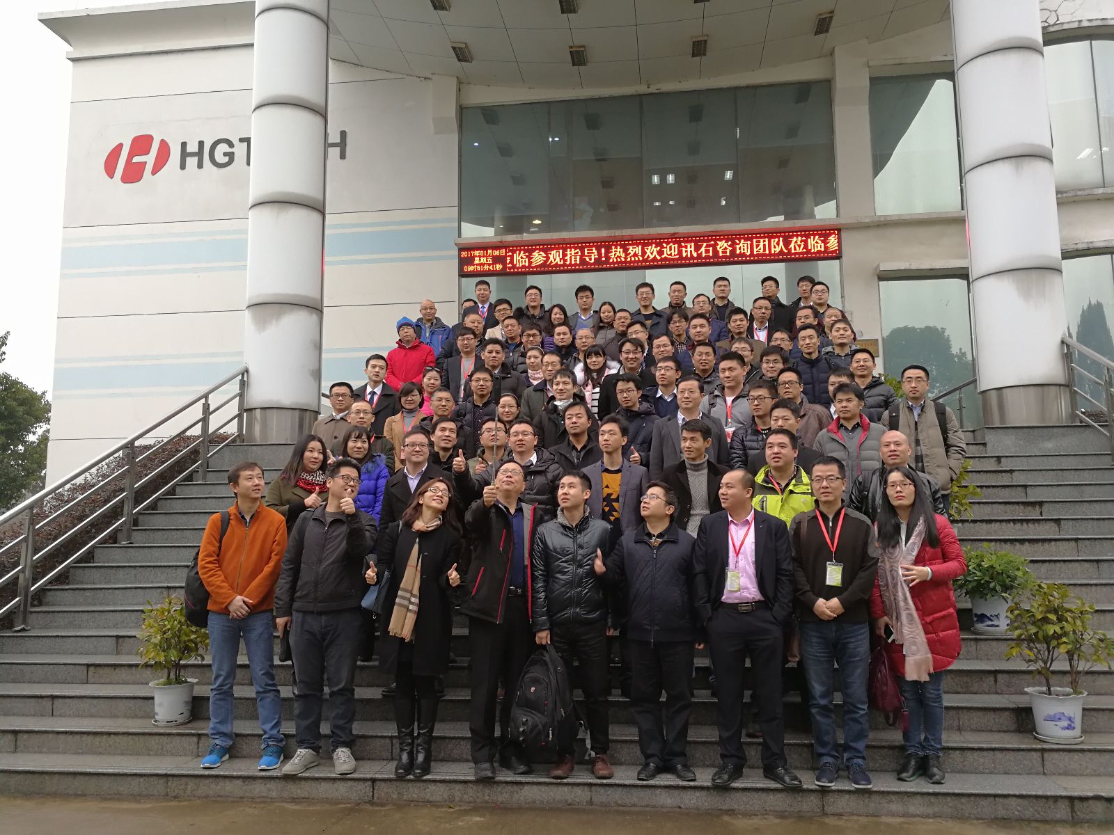 石總致辭結(jié)束 華工正源與訊石參觀團(tuán)門前合影留戀