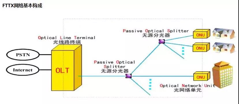 FTTx是接入網(wǎng)的發(fā)展方向,擁有無(wú)可比擬的技術(shù)優(yōu)勢(shì)。PON(無(wú)源光網(wǎng)絡(luò))技術(shù)樹(shù)型拓?fù)浣Y(jié)構(gòu)具有降低成本,服務(wù)性能強(qiáng)的優(yōu)勢(shì),因此成為接入網(wǎng)技術(shù)的首選。FTTH網(wǎng)絡(luò)采用PON技術(shù),實(shí)現(xiàn)單纖雙向傳輸,下行數(shù)據(jù)流采用廣播技術(shù),上行采用TDMA技術(shù)。