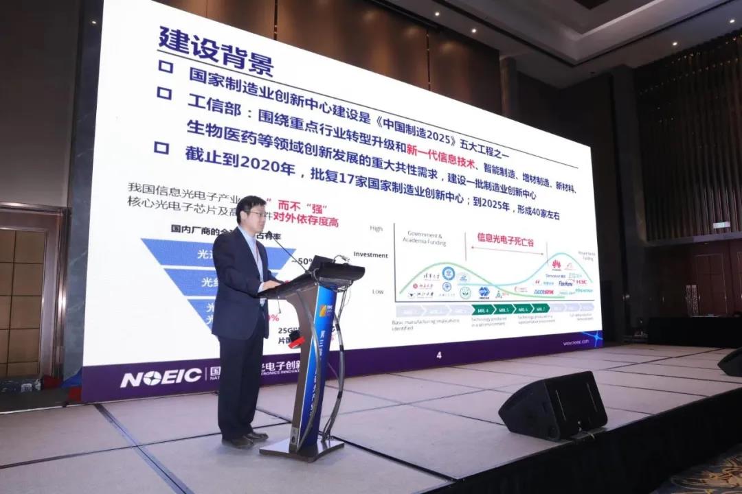 硅光論壇上,創(chuàng)新中心總經(jīng)理肖希博士發(fā)表了《國(guó)家信息光電子中心建設(shè)進(jìn)展》的主題報(bào)告。他表示,創(chuàng)新中心作為企業(yè)和創(chuàng)新技術(shù)之間的橋梁,擁有國(guó)際先進(jìn)的硅光芯片產(chǎn)品中試工藝平臺(tái),先進(jìn)的光電子封測(cè)工藝平臺(tái)以及國(guó)際先進(jìn)的“超高速、超大容量、超長(zhǎng)跨距”光傳輸技術(shù)驗(yàn)證平臺(tái)。目前已獲得了包括國(guó)內(nèi)首款400G硅光相干收發(fā)芯片和器件、110 Gbaud LNOI相干調(diào)制器、應(yīng)用于數(shù)據(jù)中心的100G DR1/400G DR4硅光芯片、全國(guó)產(chǎn)5G中傳光收發(fā)模塊、8/12寸硅光晶圓自動(dòng)化測(cè)試系統(tǒng)等多個(gè)先進(jìn)成果。