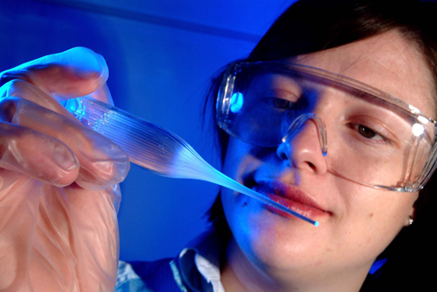 在過(guò)去幾十年里,人們一直用的是傳統(tǒng)的圓柱形光纖。不過(guò)最近一種非常先進(jìn)的光纖技術(shù)開(kāi)始嶄露頭角,這種光纖技術(shù)主要依靠每束玻璃內(nèi)部復(fù)雜的結(jié)構(gòu)。這種帶有復(fù)雜微結(jié)構(gòu)的光纖被稱為光子帶隙光纖,目前已經(jīng)引起了數(shù)據(jù)通信和電信行業(yè)的極大興趣,因?yàn)檫@種光纖與傳統(tǒng)的相比具有很多優(yōu)勢(shì),它能夠把光有效地限制在芯徑中。實(shí)現(xiàn)低損耗、低色散,并減少非線性影響,使光通信用高功率傳送成為可能。而通過(guò)正在探索的3D打印方法,研究人員將能夠更快、更經(jīng)濟(jì)地創(chuàng)建這種類型的光纖,甚至創(chuàng)造出之前不可想象的結(jié)構(gòu)。