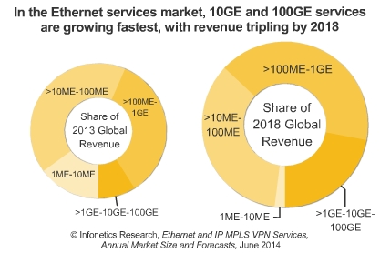 Infonetics:2018以太網(wǎng)10G&100G服務(wù)收入增300%