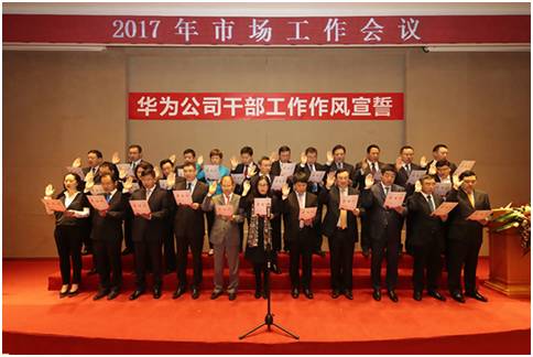 而在2017年1月11日上午9:00,華為還在深圳坂田基地召開干部工作作風(fēng)宣誓大會(huì),此前多年華為都有高管、董事等進(jìn)行宣誓大會(huì)的傳統(tǒng)。