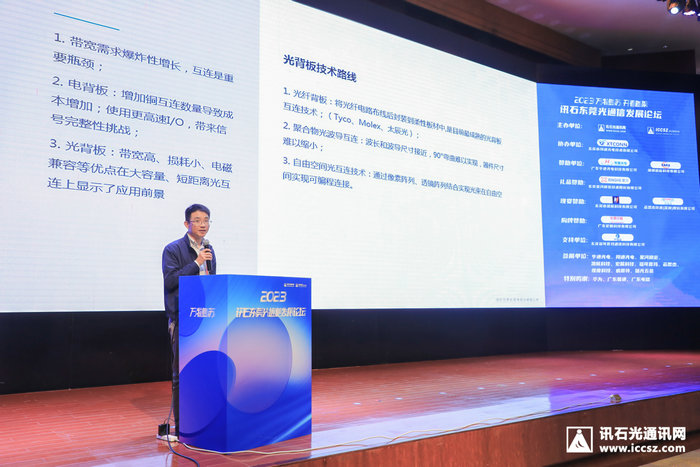 太辰光技術(shù)總監(jiān)侯丹發(fā)表《高密度高可靠性光柔性板》產(chǎn)業(yè)報告,侯丹表示光纖背板技術(shù)是光纖連接未來的發(fā)展趨勢,在通信光交換設(shè)備具有重要的應(yīng)用,可以有效提到光纖運維效率,相比傳統(tǒng)光纖跳線具有更高的集成度。光背板是OXC系統(tǒng)解決傳統(tǒng)ROADM站點連纖復(fù)雜的問題,極大地簡化光纖連接。以光柔性板為平臺技術(shù),可靈活搭配高密度光連接器、光分路器、光纖傳感器等其他光器件,實現(xiàn)板卡間互聯(lián)的新興方式。光柔性背板的特點包括:布線路徑軟件自動設(shè)計、布線機自動布纖以及工藝控制效果突出。