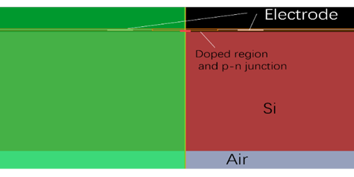 由于Lumerical 的Multiphysics CHARGE模塊是用有限元方法(Find Element Method)計算,2D還是3D對求解時間差異明顯。因此首先分析尺寸與模型:接面二極管波導平行電場方向長10um,垂直電場方向寬5mm、厚度0.09um且無垂直電場方向的形狀變化,加上載子濃度會與電場分布強相關,建議此步驟用2D求解來節(jié)省時間。但由于參雜模型需要3D信息定義,我們建立3D模型但用2D的求解范圍,建模中垂直電場方向有個寬度即可。