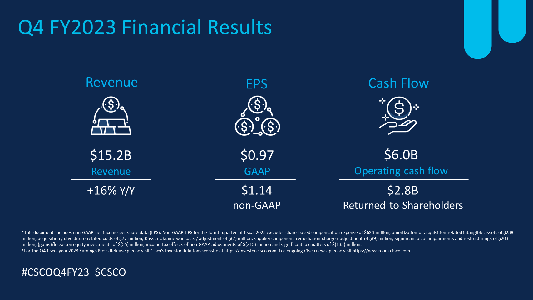 ICC訊(編譯:Vicki)思科公布了截止到2023年7月29日的2023財(cái)年第四季度的財(cái)務(wù)業(yè)績(jī)。
