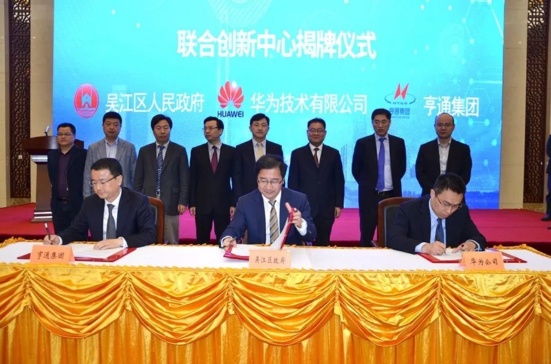揭牌儀式上,吳江區(qū)政府、華為、亨通三方還簽署了相關(guān)戰(zhàn)略合作協(xié)議、聯(lián)合創(chuàng)新合作協(xié)議。
