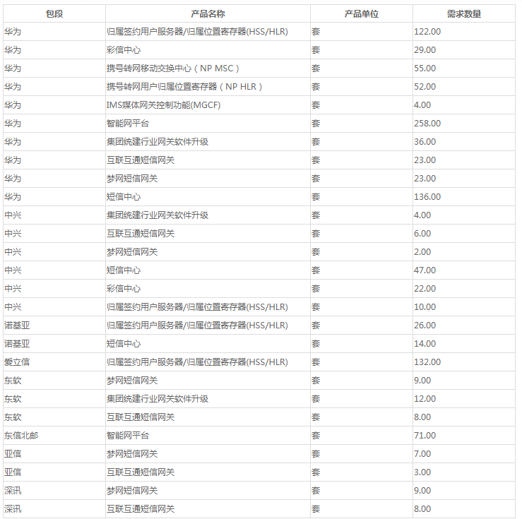 據(jù)悉,本次集采需改造290套現(xiàn)網(wǎng)HSS/HLR,改造197套現(xiàn)網(wǎng)短信中心,改造150套現(xiàn)網(wǎng)短信網(wǎng)關(guān),改造51套現(xiàn)網(wǎng)彩信中心,改造329套VPMN SCP,改造4套廣東關(guān)口局融合MGCF,建設(shè)55套NP MSC和52套NP HSS/HLR。