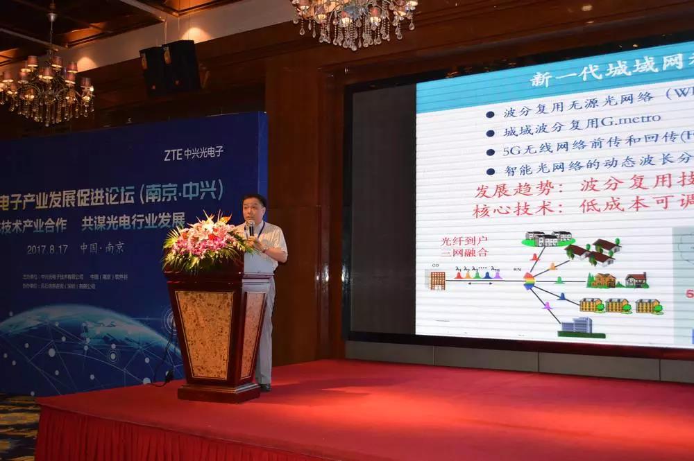 ICCSZ訊 8月17日,中興通訊以“光電子產(chǎn)業(yè)合作發(fā)展與技術(shù)交流”為主題,在南京成功舉辦2017光電子產(chǎn)業(yè)發(fā)展促進(jìn)論壇。本次光電子產(chǎn)業(yè)發(fā)展促進(jìn)論壇由中興光電子技術(shù)有限公司和中國(guó)(南京)軟件谷主辦、訊石信息咨詢(深圳)有限公司協(xié)辦,南京市政協(xié)副主席、雨花臺(tái)區(qū)委書記兼中國(guó)南京軟件谷工委書記黃河,中興通訊高級(jí)副總裁陳杰、中興光電子總經(jīng)理徐勇積以及來自國(guó)內(nèi)外的120余家通信企業(yè)的280余名代表出席了論壇。共計(jì)16位光通信領(lǐng)域的知名企業(yè)和學(xué)術(shù)界專家教授代表在論壇上發(fā)表了主題演講。