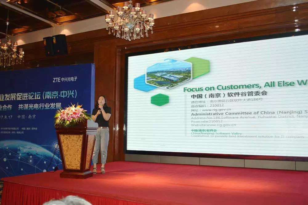 中興通訊在南京的發(fā)展離不開南京優(yōu)秀的產(chǎn)業(yè)集群優(yōu)勢(shì),中國(guó)(南京)軟件谷李本華局長(zhǎng)向在座光電子產(chǎn)業(yè)界闡述了軟件谷產(chǎn)業(yè)環(huán)境與政策,誠(chéng)邀企業(yè)共促發(fā)展,共同分享產(chǎn)業(yè)集群帶來的發(fā)展便利。