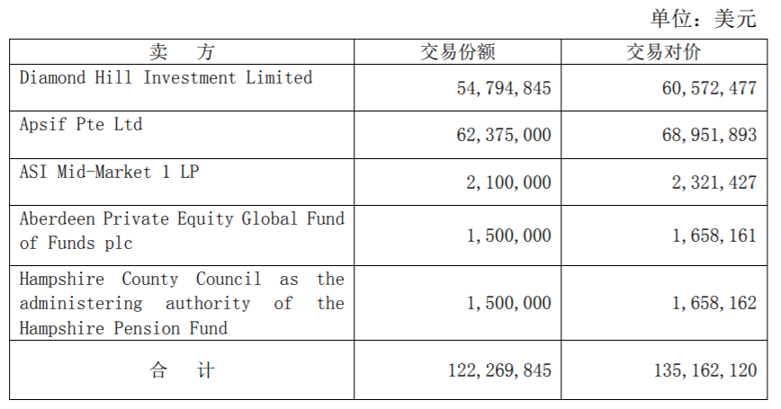 由上海啟瀾收購交易對方持有的Diamond Hill, L.P.(簡稱合伙企業(yè))權(quán)益,收購合伙權(quán)益對應的出資額為122,269,845美元,收購權(quán)益間接對應的索爾思光電股份數(shù)占合伙企業(yè)持有索爾思光電股份數(shù)的比例為83.37%,交易價格為135,162,120 美元,約合人民幣96,776.08萬元。