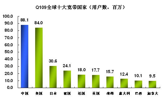 寬帶用戶數(shù)達到1.08億,不過季度增長率只有2.6%;其次是